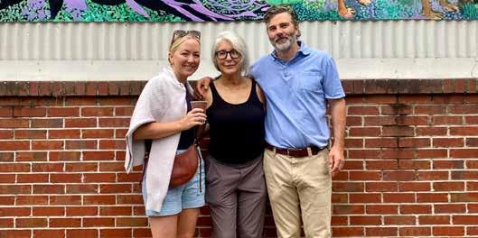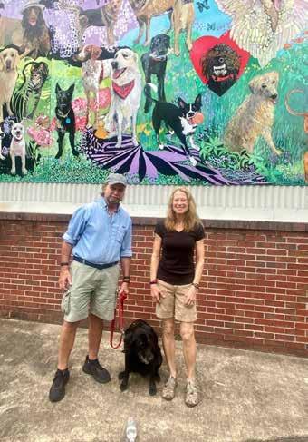 hair ornament, while others are depicted with wings or halos to mark their passing. One of our neighbors of more than 50 years, has all five of his dogs featured on the murals. Through donations to Park Pride, neighbors supported the commissioned murals and Mary’s work. The original tennis court mural is among the first in the City of Atlanta Park and the custom pet portraits are uniquely Peachtree Hills.
