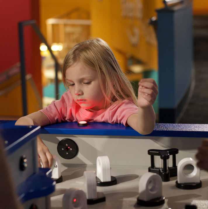 experiential areas, including the Color Wheel, Colorful Shadows, Laser Table, Touchable Sound, Pixel Pegs, Standing Wave Tube and Prisms. Designed to inspire curiosity and a love for science, the Step Up to Science exhibit is ideal for both kids and kids at heart.