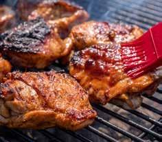 8. OPTIONAL: Baste the thighs with your favorite sweet barbecue sauce and char to your desire.