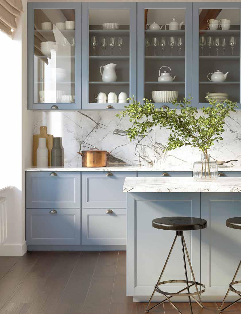 As for surfaces, quartz is the leader. “It has made great strides in looking realistic and natural,” Kurt says, pointing to the white with gray marbling pattern as a popular and timeless pick.