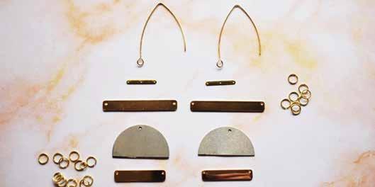 Take your half-circle stamping blanks, large gold bars and medium gold bars and arrange them in the order you want your earrings to flow. You can see how we arranged ours, but consider switching up the placement of each item for varying earring styles.