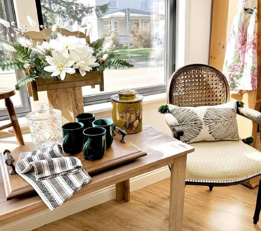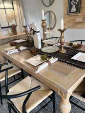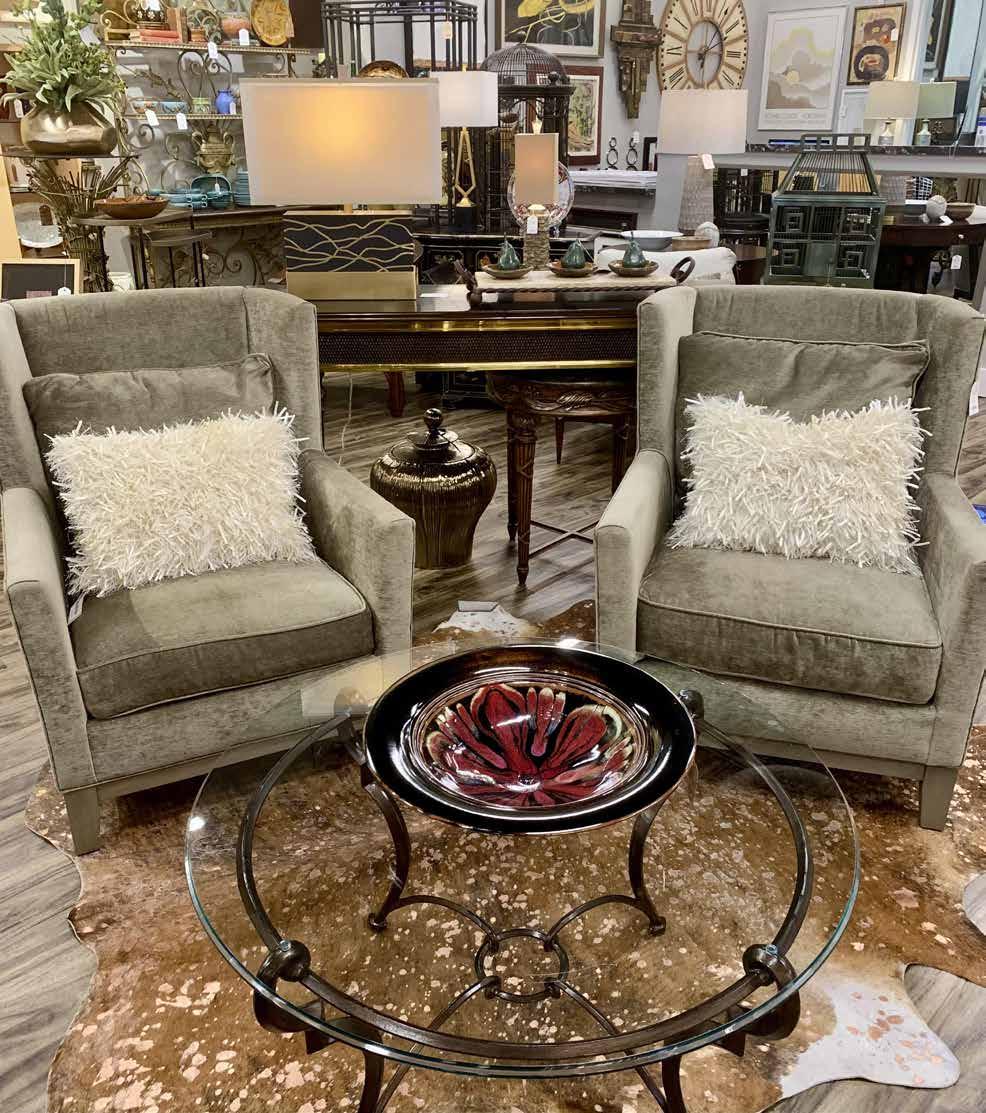 Store owner Becky McClain says she provides an ever-evolving supply of appealing furniture and a growing gift shop with handcrafted items created by local artisans. “We have sources for brand-new furniture, as well as preloved pieces. To freshen or add interest at home, we encourage clients to mix their personal décor with different elements of metals, ceramics, wood, plants, woven baskets, colors and contrasts,” she adds.