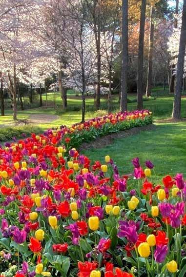 Arriving at the entrance to Gibbs Gardens, a 376acre estate, fills you with a sense of whimsical magic. As if something from a fairy tale, you immediately feel a sense of child-like wonder that gently draws you across the first bridge and cascading waterfall to the welcome center. As you wander the perfectly orchestrated path through the brilliantly colored tulip beds of “Le Jardin,” you immediately notice the joy the flowers bring to everyone as they select the perfect spot to capture the moment with family and friends.
