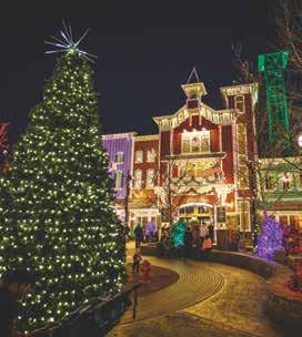 Branson’s Silver Dollar City transforms into a glowing Ozark wonderland with more than 6.5 million lights and over 1,000 decorated trees. At its heart, an 80-foot animated Christmas tree dazzles Town Square every evening. Guests can stroll through Christmas In Midtown®, enjoy the final year of Rudolph’s Holly Jolly™ Parade, and see Broadwaystyle productions like A Dickens’ Christmas Carol. Artisans showcase handcrafted gifts while holiday buffets serve prime rib and cinnamon bread. With coasters, a living nativity, and even a Frisco Sing-Along Steam Train, An Old Time Christmas offers families the perfect mix of timeless tradition and modern holiday magic.