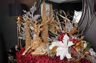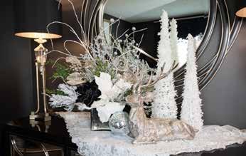 This year, Josette is also introducing a fresh take on holiday decor by replacing the traditional Christmas tree in her own home with a stunning winter wonderland scene. Large, illuminated birch trees stand tall, while smaller trees are embellished with metallic poinsettias, silver leaves, and ball garlands. Adding to the charm are standing deer, creating a captivating atmosphere that invites guests into a serene and magical landscape.