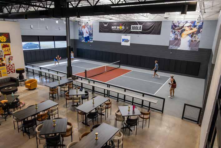 Hot Shots Bar & Grill offers a delectable menu, a full bar, and a 12-tap Self-Pour Tap Wall. The club also features a special beer developed by the local Hoppin’ Frog Brewery. The Hot Shots Zesty Pickle Beer is a club favorite. “We wanted to create a place that felt like home to every player,” says co-founder Kim Waikem. “Whether you’re picking up a paddle for the first time or chasing your next tournament win, we wanted everyone to feel like a part of the club, play a game, and enjoy dinner with drinks.”