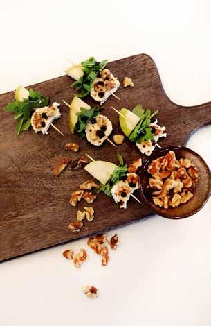 • Gently press chopped walnuts onto brie cheese to stick.
