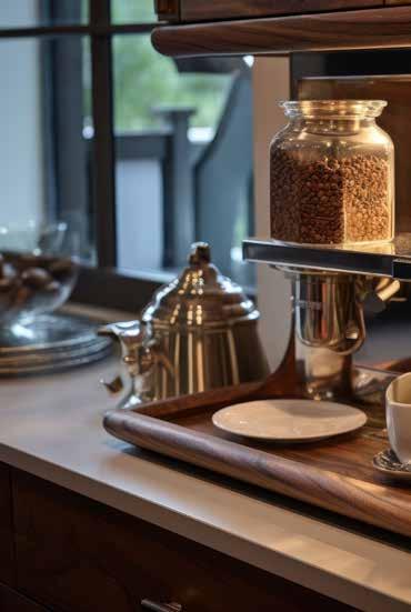On the Countertop: Your kitchen countertop can serve as an attractive location for a charming coffee bar. This spot offers proximity to a water source and allows you to tailor the coffee space to your family’s preferences, which you can update seasonally.