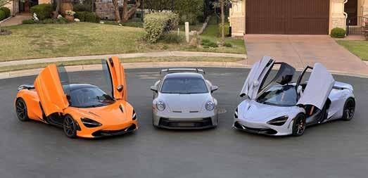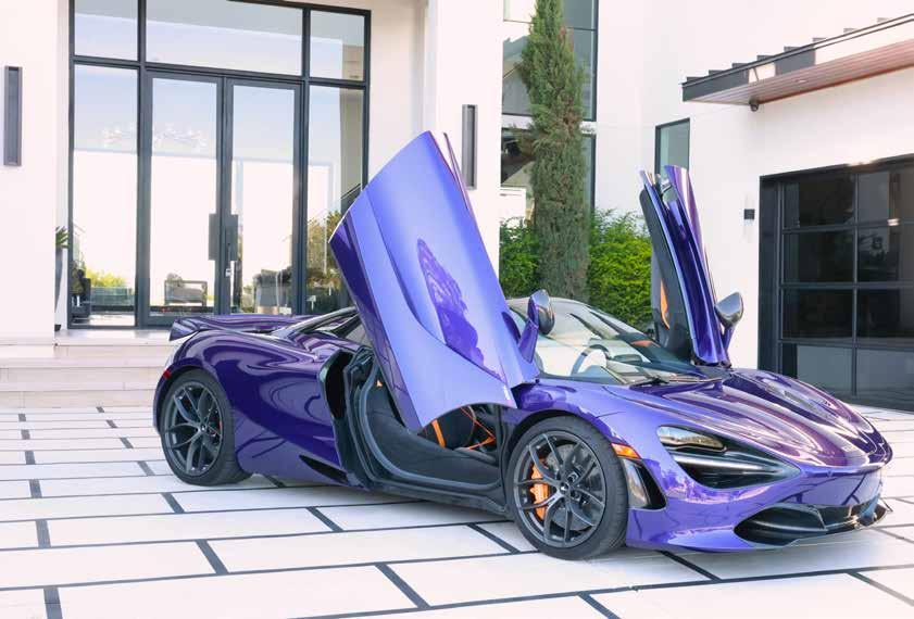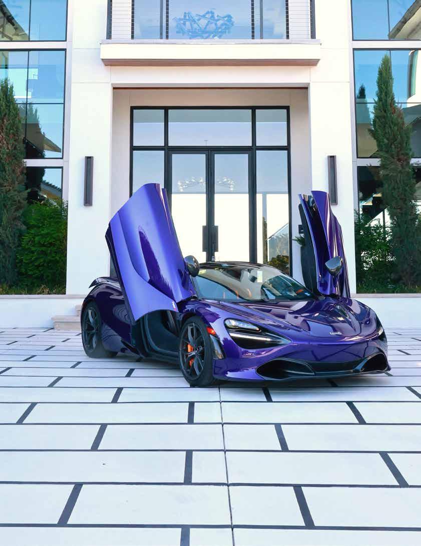 Kino Ayoubi's 2022 McLaren 720s Spider in MSO Lantana Purple in front of a modern, custom waterfront home. See Kino’s editorial on pages 26 and 27. 6