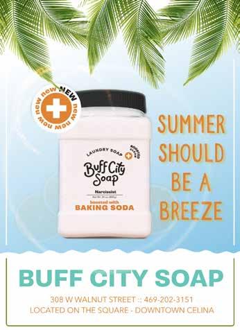 They picked Celina as their first site in part because of its location on the downtown square. The Imhoffs decorated the shop with “a small town, boutique style to it,” according to Natalie. Buff City Soap opened in late 2020 and, like many businesses during this time, worried about the store’s success. Natalie notes that it was the support of the community that helped it thrive. “This is what I love about Celina and Prosper. The people make the community go around. It’s a tight-knit group, supporting one another,” she said. In fact, she reports, “The Celina grand opening exceeded my goals. We had a line around the building for people to get in! It felt really special and says a lot about Celina.”