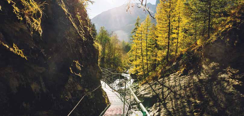The footbridge of the Leukerbad thermal springs (Dala gorge) during fall.