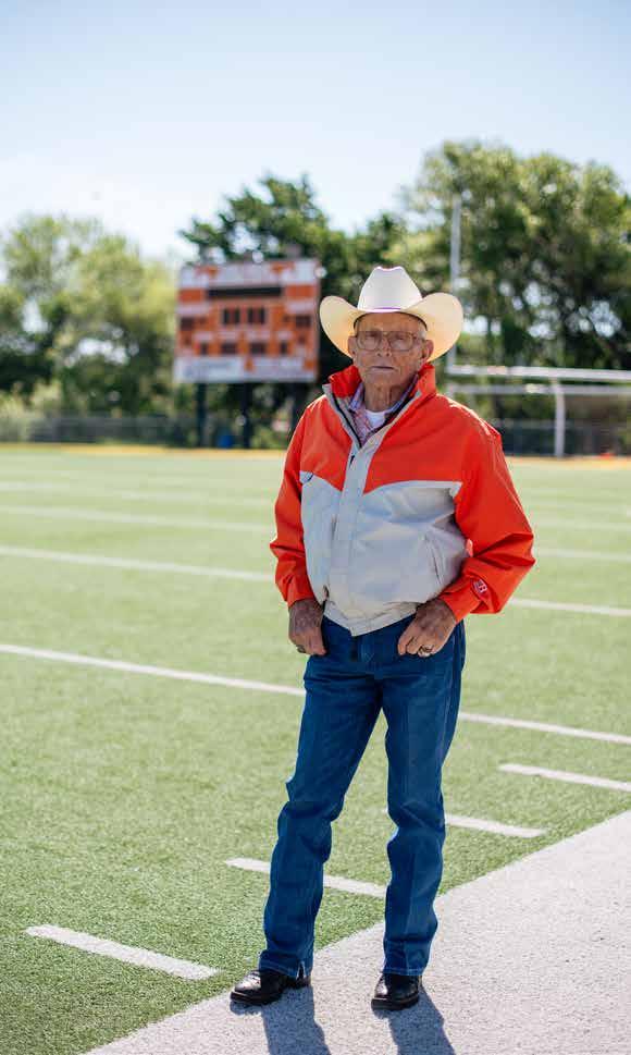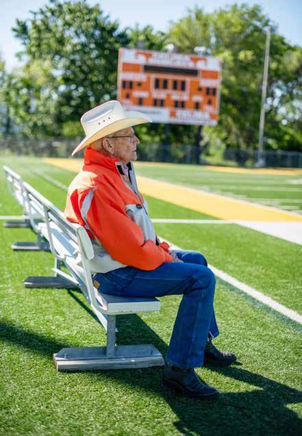 Current City Council Member Brandon Grumbles recalled, “Coach would sometimes end practice early on Wednesdays, pick up kids, and take them to church. He made sure they were fed. If they needed shoes, he made sure they had shoes. If they needed money, he had plenty of work on his ranch and he’d make sure you had money.” Everyone I spoke to had fond, and not so fond, memories of working on Coach Moore’s sprawling 200acre family ranch in Mustang. From cutting trees and grass to the dreaded task of hay hauling – universally referred to as “awful” – the boys would also meet for dinner with coaches, watch movies at their homes, and