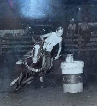 at age three, on a ranch north of Celina, but didn’t learn about the playdays till she turned 19. “I used to ride my horse to the arena,” she said, “on the old Business Highway 289. And I’d make a couple practice runs on him, and then ride back.”
