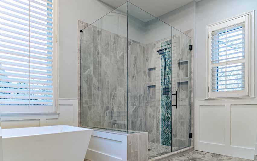 “The technology behind the glass continues to improve, and the materials we use are water-clear and stain-resistant,” Steve shares. “Whether we’re upgrading an existing space by adding a new door, working alongside a builder to elevate a new home, or helping a homeowner with a major renovation, our team stays up-todate on the latest in shower door design and technology.”