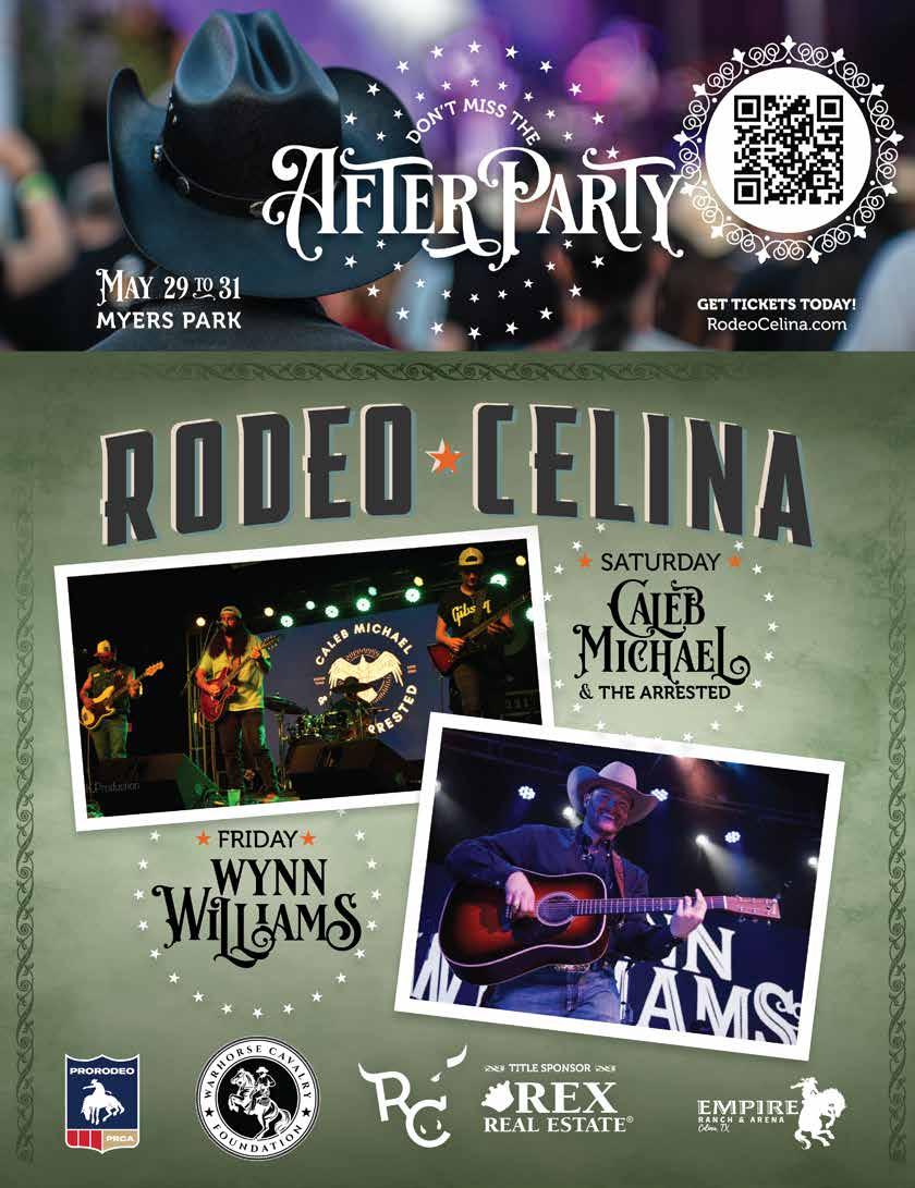 Mark your calendars for the 3rd annual Rodeo Celina! This action-packed weekend is hosted at Myers Park & Event Center where you can see heartpounding rodeo action, enjoy mouth-watering grub, shop top-notch vendors, partake in fun-filled kids’ activities, and be a part of something remarkable. Live Bands and DJ after the rodeo! Get your tickets at RodeoCelina.com. Come join us May 29th - May 31st for the best fun in the county!