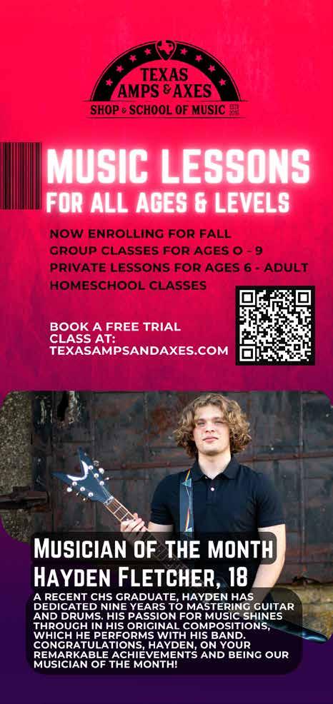 Texas Amps and Axes, 117 W Broadway Street in Prosper, or online at School.TexasAmpsAndAxes.com.
