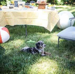 • Set up play areas for your furry guests to enjoy. This can include a doggy pool or splash pad, chew toys, frisbees, and don’t forget the pet-friendly bubbles.
