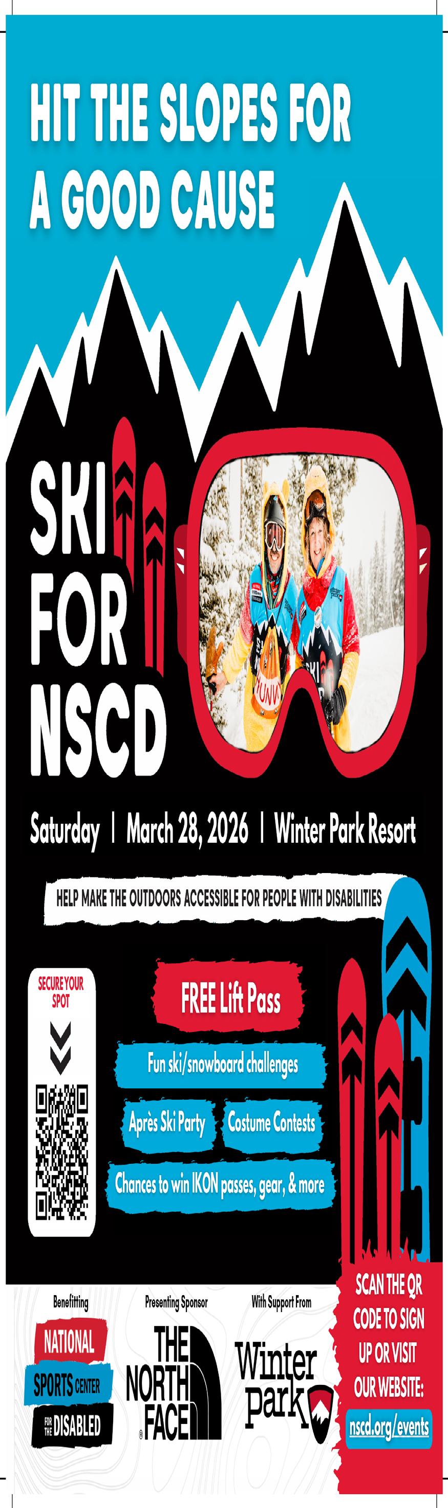 28 skiing, competing, and celebrating for a cause.” Attendees enjoy free Winter Park Resort lift tickets, mountain challenges, scavenger hunts, costume contests, giveaways from The North Face, and an après-ski celebration, all while raising critical funds for NSCD’s programs. “It’s an unforgettable day,” she adds. “There’s so much laughter, camaraderie, and purpose, it really captures what our mission is all about.”