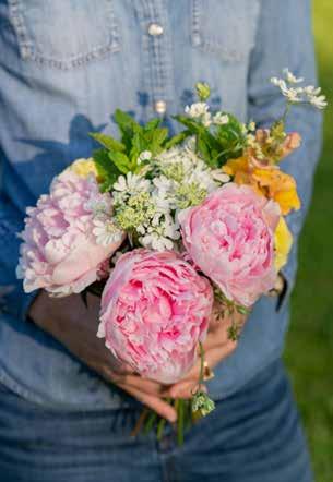 ARRANGE “Narrow-mouth jars and vases will hold your flowers more upright. Wide-mouth containers will require more stems and generally gives a more relaxed presentation,” explains Stuart. “Start with larger flowers first and build around those creating balance but don’t worry about perfect symmetry.”