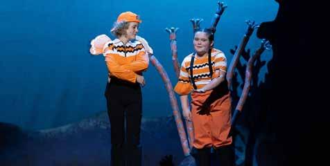 22: Zak, Gabe, Maddie and Evan singing “Fish are Friends not Food” in Finding Nemo Jr. 23: First day of school with Professor Ray (Cora), in the recent Mainstage Series production. 24: Gill (Teagan) hatching a plan so that Nemo (Kara), can get back to his dad. 25: Marlin (Connor) teaches Nemo to be safe in the ‘Big Blue World.’ 26: Dory (Georgia) and Marlin (Connor) need to swim through the stinging jellyfish. 27: Nemo (Kinna) and Marlin (Allison) and the sea chorus fish. 28: Marlin and Coral (Zoe), Nemo’s Mom and Dad with their eggs.