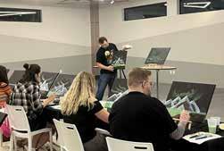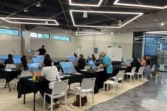 8: Young attendees wave as the pilot takes off at PDK Airport’s Good Neighbor Day. 9: Attendees of all ages watch the show at PDK Airport’s Good Neighbor Day. 10: The city of Chamblee welcomes 19 delegates from Ukraine to city hall. 11: Boy Scout Troop 21 leads the Pledge of Allegiance at a Chamblee City Council Meeting. 12: Networking at the ChamBlee to B event at the Distillery of Modern Art. 13: Participants create art at a recent Sip and Paint event by SPS Productions. 14: Sip and Paint Attendees show their artwork at a recent event by SPS Productions.