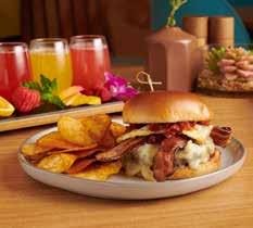 Several salads and entrees are available at lunch, Vizcarra says, adding that the Pulled Rotisserie Chicken Sandwich with applewood smoked bacon, pepper jack cheese, avocado, pickled red onion, arugula, and smoky house adobo on toasted sourdough is already a favorite among guests.