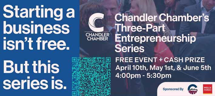 Start Your Business Alone—But, With Help Join the Chandler Chamber’s entrepreneurship series for everything your business needs to get off the ground. On April 10, chat with a panel of marketing experts to learn the art of attracting eyeballs. On May 1, learn financing from industry gurus. On June 5, a lucky few will pitch their business (for more than just bragging rights). They will be held 4-5:30 p.m. Location to be announced. For more information on signing up, contact info@chandlerchamber.com. business monthly A ROUNDUP OF NEWS FROM LOCAL BUSINESSES APRIL 2024 602-488-3686 FRESHSTARTCBD.COM 2580 W. CHANDLER BLVD STE #5 , CHANDLER, AZ 85224 480-786-9222 WWW.GRANTCHIRO.COM 2580 W. CHANDLER BLVD STE 4, CHANDLER, AZ 85224 GET READY FOR SUMMER INCLUDES: - CONSULTATION - X-RAY - ADJUSTMENT - 30-MINUTE MASSAGE NEW PATIENT START UP $89 * OFFERS EXPIRE 4/30/24 20% OFF ANY ONE ITEM BUSINESS MONTHLY Scan to read more 10