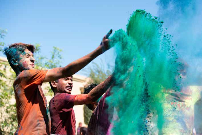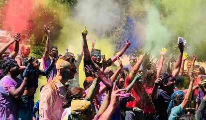 At this celebration, incoming guests are doused with buckets of colored water. The slow movers are a target for kids, who practice their skills with balloons filled with colored water. The event culminates with Bollywood music and traditional Indian food.