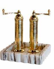 3. 8” Alexander (Atlas) European Brass Salt and Pepper Mills ($99 each) on Gray Melange Scalloped Marble Tray ($49.50) from The TomKat Shoppe in Downtown Ocotillo. TheTomKatStudio.com
