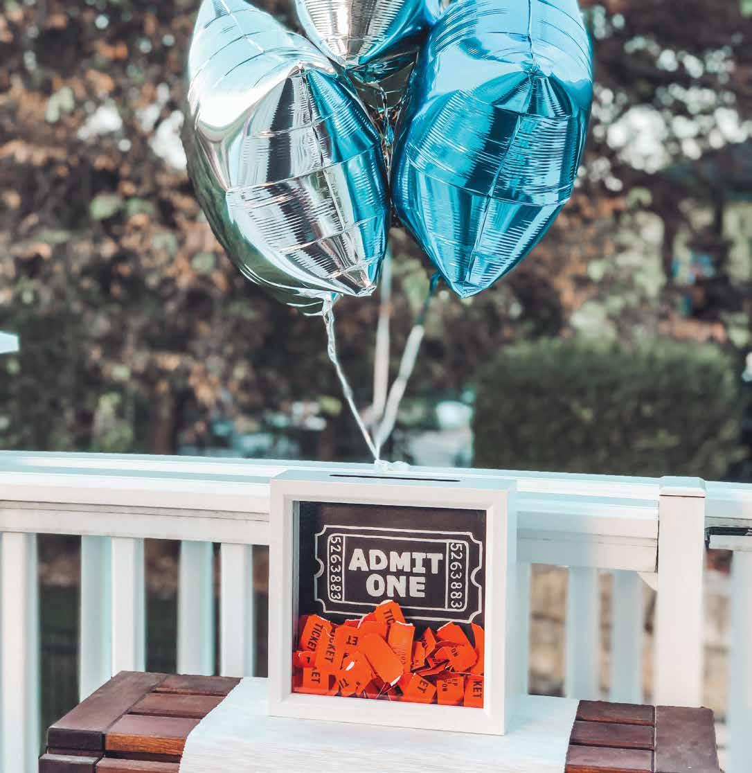 Before entering our theater (aka our backyard), I set up a shadow box for guests to place their entry ticket.