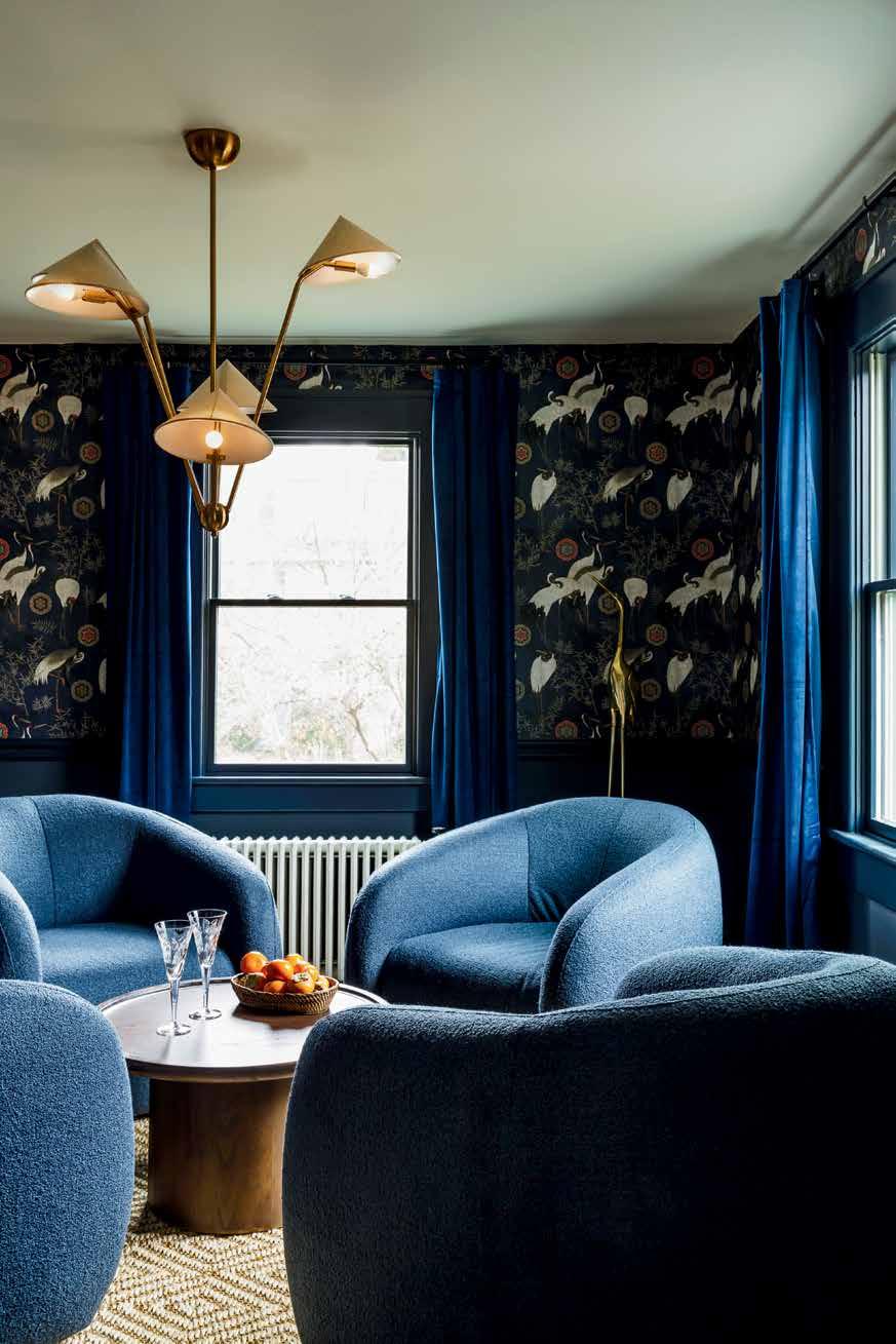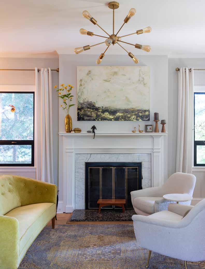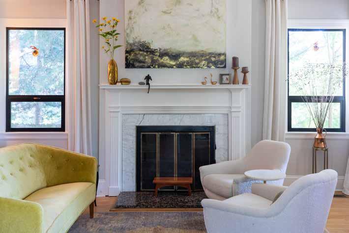 The living room is a fluid area, with the composure changing seasonally. In the cooler months, Greenewalt considers it a “fireplace-centric” room, with couches and chairs cozily arranged by the decades-old fireplace that emits more than enough warmth to make anyone want to hunker down fireside.
