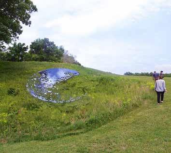 A permanent major commission is by artist Sarah Sze. “It’s a 36-foot diameter incomplete circle called Fallen Sky,” says Nora. “The top, which faces up towards the sky, is mirrored stainless steel, so you can look into it and see not only your face, but the sky and clouds and trees as well. It kind of brings the sky and the heavens down to earth. Sarah has also done a temporary installation that will be in our largest indoor gallery.”