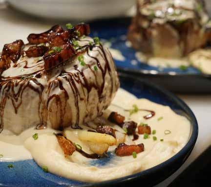 Take, for instance, one of the standout dishes on the menu: Bacon-Wrapped Long Hot Peppers. Inspired by traditional Italian ingredients but presented with a fresh twist, this dish combines ground sausage, veal, and bacon, wrapped in crispy bacon and finished with a lemon honey ricotta.