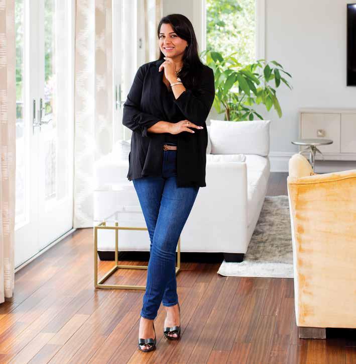 Today, her company, NV Luxe Interiors in Livingston, is in high demand. “I love that when I walk into a space, I can really transform it to make it functional while not compromising on luxury or a sophisticated overall look and feel,” says Nisha.