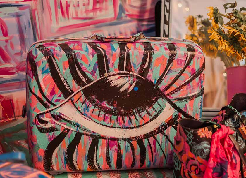 From shoes and vintage suitcases, to hats and handbags, anything and everything is a canvas awaiting Reckert’s touch. Olivia gave us a glimpse into her next business venture: Wet Leather, which will allow her to expand her work to creating custom art on leather jackets and more. No matter the canvas, one thing is abundantly clear: Reckert’s work encourages us all to live life a little more colorfully.