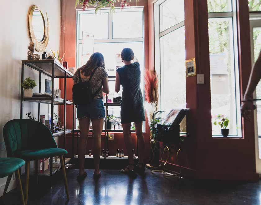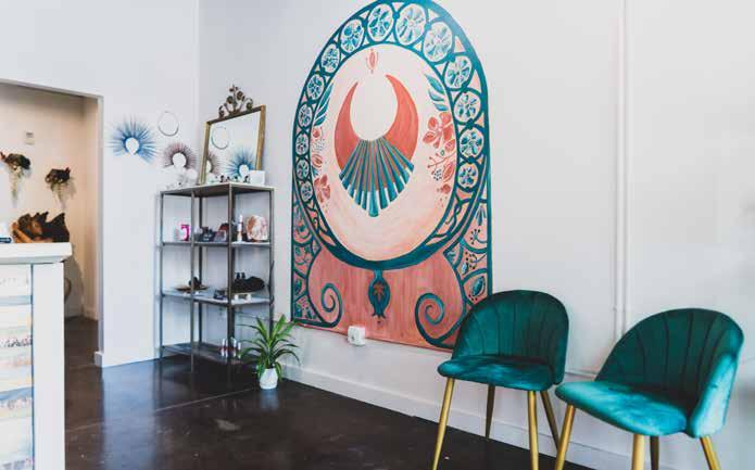 Merryfield and Kapowski have an aura about them that is comforting, safe, and inviting. They model complete transparency in all things and highlight that everything about their shop design and aesthetic were completed entirely by women and that all items in the shop including: crystals, skin-care products, chocolates, jewelry, tea, books, and more are by women-owned brands.