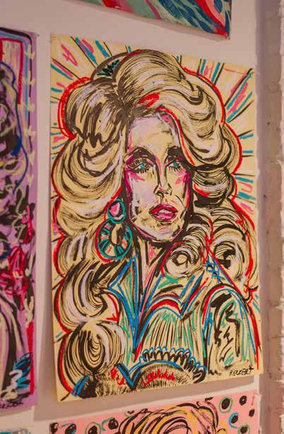 A Chattanooga staple, Olivia Reckert’s iconic art can be found throughout the city. From window murals on Frazier to her distinctive aesthetics at Reagan’s, Whiskey Cowgirl, and Hart & Hive, Reckert breathes life through art on every surface she touches. I’ll never forget the first time I saw her work in window displays at Locals Only and Boxcar General Store. Reckert’s signature bright colors and whimsical brush strokes literally stopped me in my tracks.