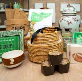 5 Game Day Collection: Be the star of your football party with these fabulously festive Game Day entertaining pieces! (pictured: Beatriz Ball Luxury Bamboo Melamine Servingware, Illume WoodFire Electroplated Candles, Ficks Classic Margarita Mix, Touchdown Decorative Pennant, Game Day Melamine Trays, Reusable Chip Basket, Football Bowl, Spreader, and Napkin)