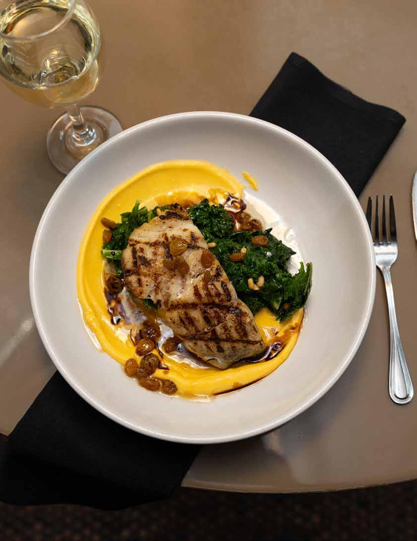 Served with Butternut Squash, Sautéed Kale, Golden Raisins, Pine Nuts, and Brown Butter Vinaigrette
