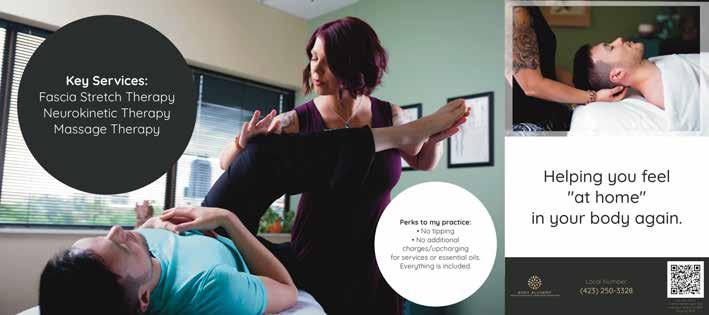 MENTION THIS VOUCHER FOR A Progressive barre. Powerful results. www neighborhoodbarre com chattanooga@neighborhoodbarre com (423) 883-0535 Text, call, or scan the QR code to book your first class! New client intro offers! 2 classes for $30 or 2 weeks unlimited for $55 19 | CITYLIFESTYLE.COM/CHATTANOOGA MARCH 2024