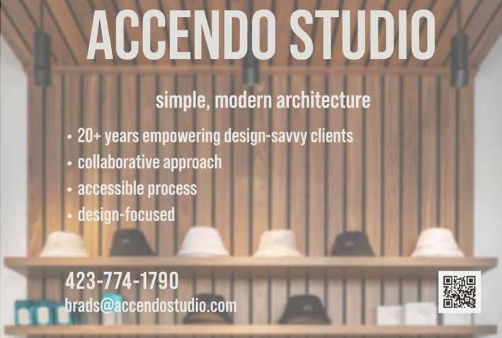Inspiration for your best local life. Good news happening right in your neighborhood. STAY CONNECTED TO YOUR COMMUNITY FOLLOW US ON INSTAGRAM CHATTANOOGA CITY LIFESTYLE™ SCAN TO CONNECT R E N O V A T I O N S O U T D O O R L I V I N G S P A C E C U S T O M H O M E S h o m e w o r k s c h a t t a n o o g a . c o m @HOMEWORKS CONSTRUCTION 423.504.0438 33 | CITYLIFESTYLE.COM/CHATTANOOGA MARCH 2024