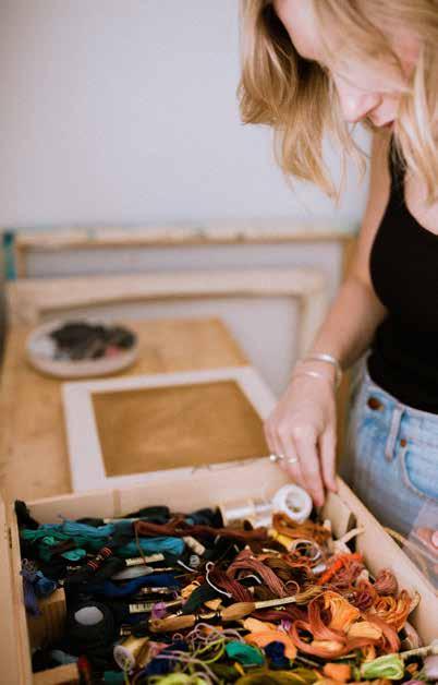 While she purchases indigo dye, she is consistently tapping into ways to fabricate her own materials, pulling from nature’s magnificent toolbox and thinking beyond big-box art store paint.