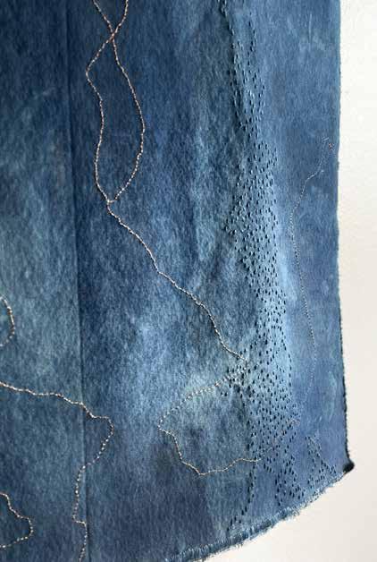 Her work — possessing shifting shades of dye, accented with hand-stitched embroidery — brilliantly pairs two very different