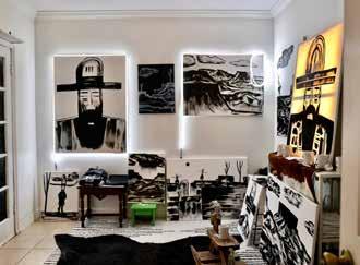 Her paintings fall into a cohesive black-and-white color scheme.