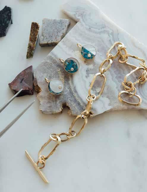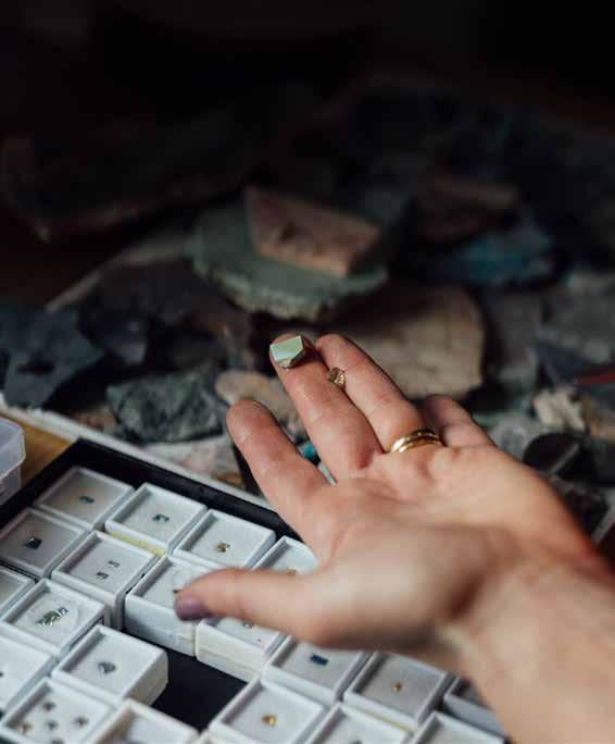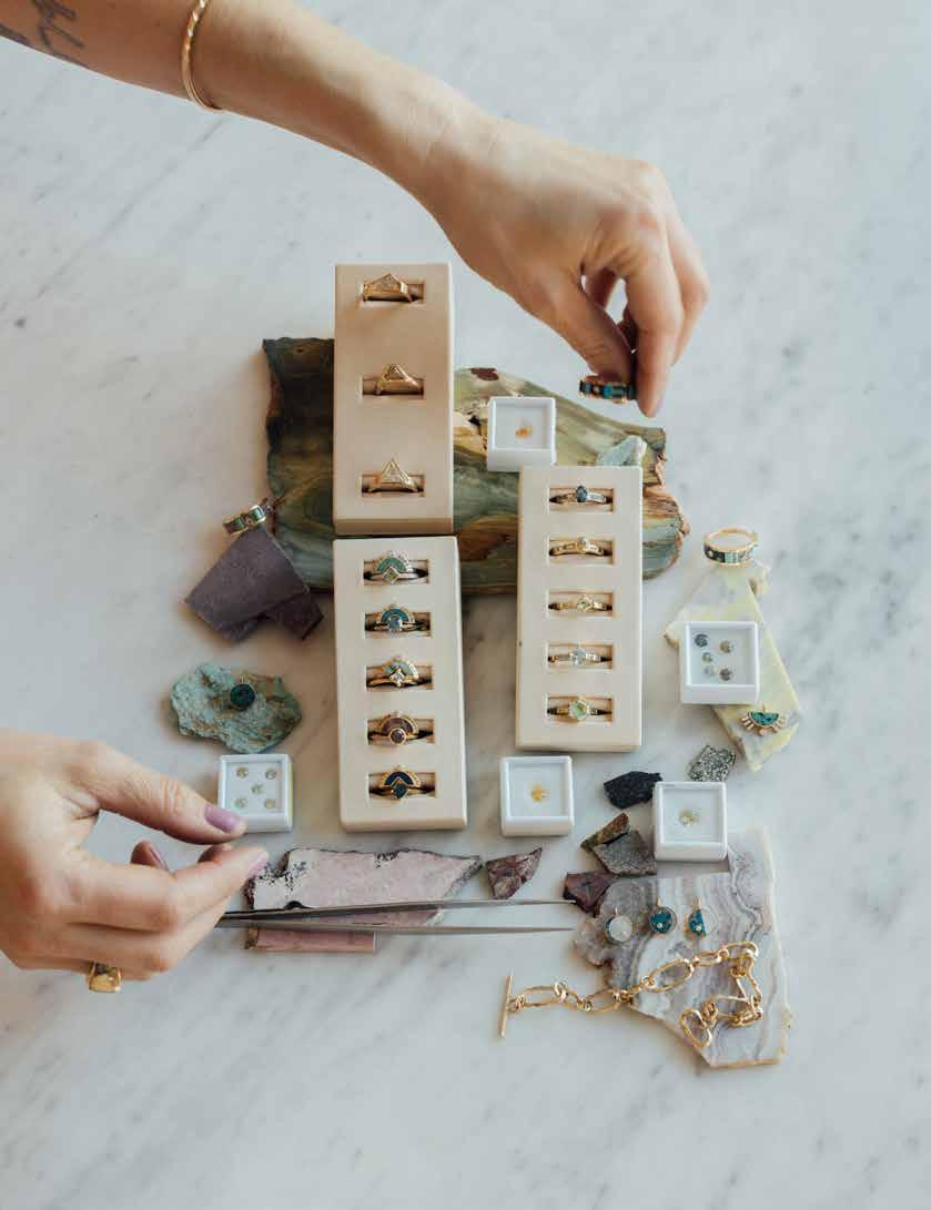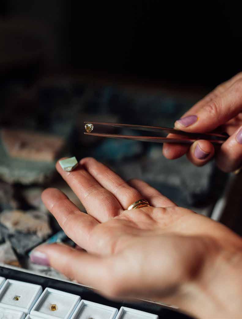 Her sourcing is under constant review according to the advances of the day. Mariele traces the provenance of almost every stone, works exclusively with Americanmined inlay stones, and sources diamonds and gold from post-consumer or verified origins. She is particularly known for Montana sapphires, a stone found close to her childhood home. In order to make something sacred for someone, she believes, the path of the material itself must be clean. She also welcomes clients to bring their own gold, diamonds, or gemstones to be reimagined. Repurposing heirlooms into something current and powerful, with the lightest possible footprint.