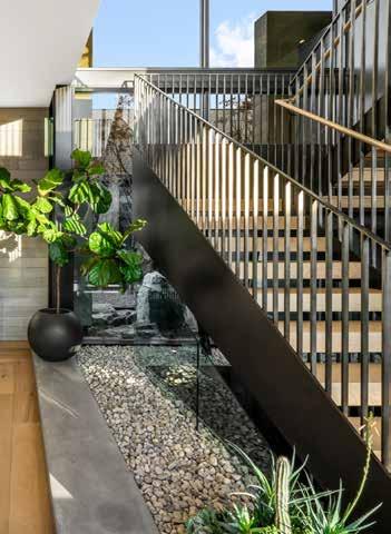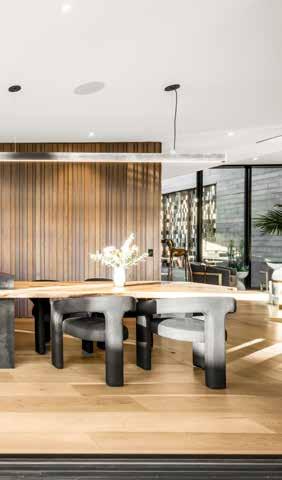 “Whether hosting large gatherings or enjoying a quiet evening by the two separate fire pits, the transition feels natural and intuitive,” Behr says. “The outdoor spaces become a true extension of the home rather than a separate destination.”