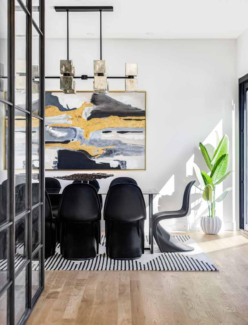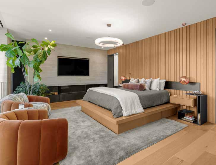 Outside, the atmosphere shifts seamlessly with the seasons. “The backyard is best described as a private, resort-style sanctuary,” Behr says. Heated sitting areas, covered patios, and dual fire pits allow for year-round enjoyment—equally suited to summer pool parties or intimate winter evenings.