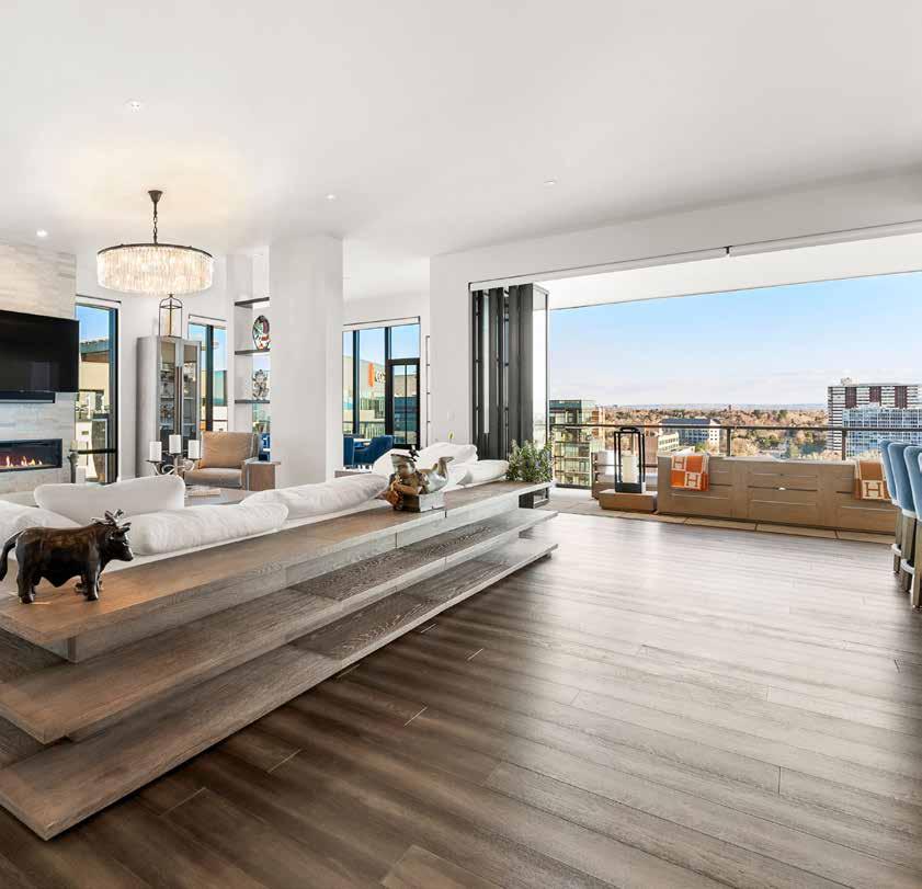 As part of an exclusive collection of 71 high-rise condos in energetic Cherry Creek North, the building is known for its designer interiors, private rooftop pool, sweeping views of the Rockies and personalized homeowner services. Unit 1212 is a 3-bedroom, 4-bathroom penthouse that spans approximately 3,400 square feet and combines sophisticated taste with contemporary design.