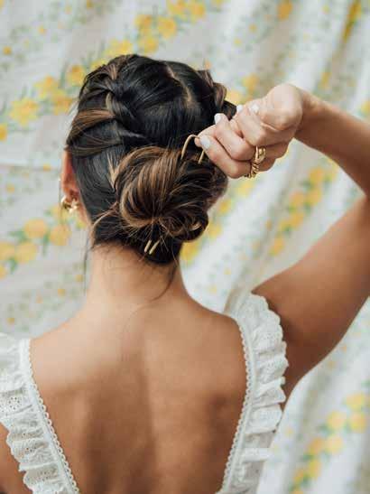 For your Saturday wandering the farmer’s market, this will be a great go-to. Part the hair down the center or side part, if preferred. Create braid(s) on the side of the head and secure with elastic. Twist the hair with braids into a simple bun, securing it with hair pins. Add an accessory for a classy touch. One of our favorites is the Mesa Brass Hair Pin from Cedar and Hyde.