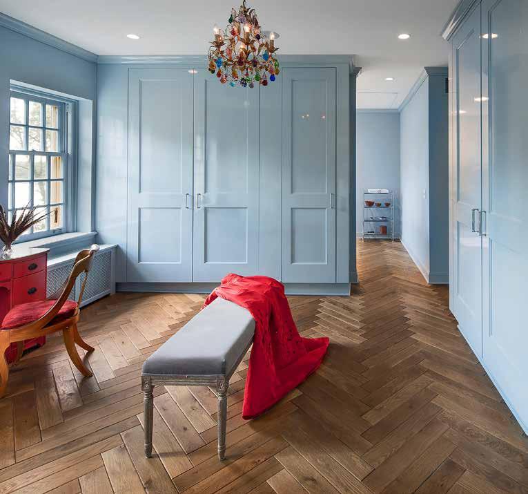 In her showroom, Mary represents 40 lines of high-end and exclusive artisan furniture, lighting and accessories in addition to her private upholstery label, DWS Upholstery. Her portfolio includes residences and commercial spaces throughout Denver, across the Front Range and in mountain resort towns. She’s furnished everything from single rooms to large residences with eight bedrooms. Mary appreciates quality and advocates for repurposing items, advising that “fast furniture” is akin to fast fashion. Both practices encourage wastefulness and cause significant harm to the environment. “I’ll always encourage someone to refinish or paint a nice piece of furniture instead of throwing it out," Mary says. For a women’s locker room in a country club outside Denver, she
